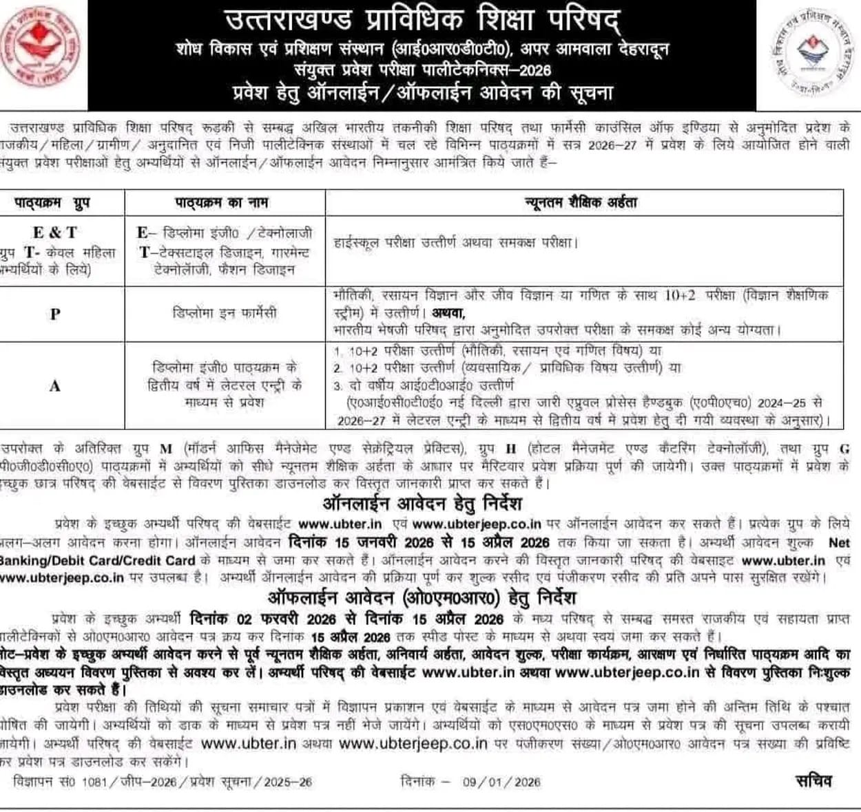 It offers Diploma in Engineering in six branches, namely Electrical Engineering, Electronics Engineering ,Information Technology , Civil and Environmental Engineering , Mechanical Engineering and Computer Science Engineering.It also offers Diploma in Pharmacy.