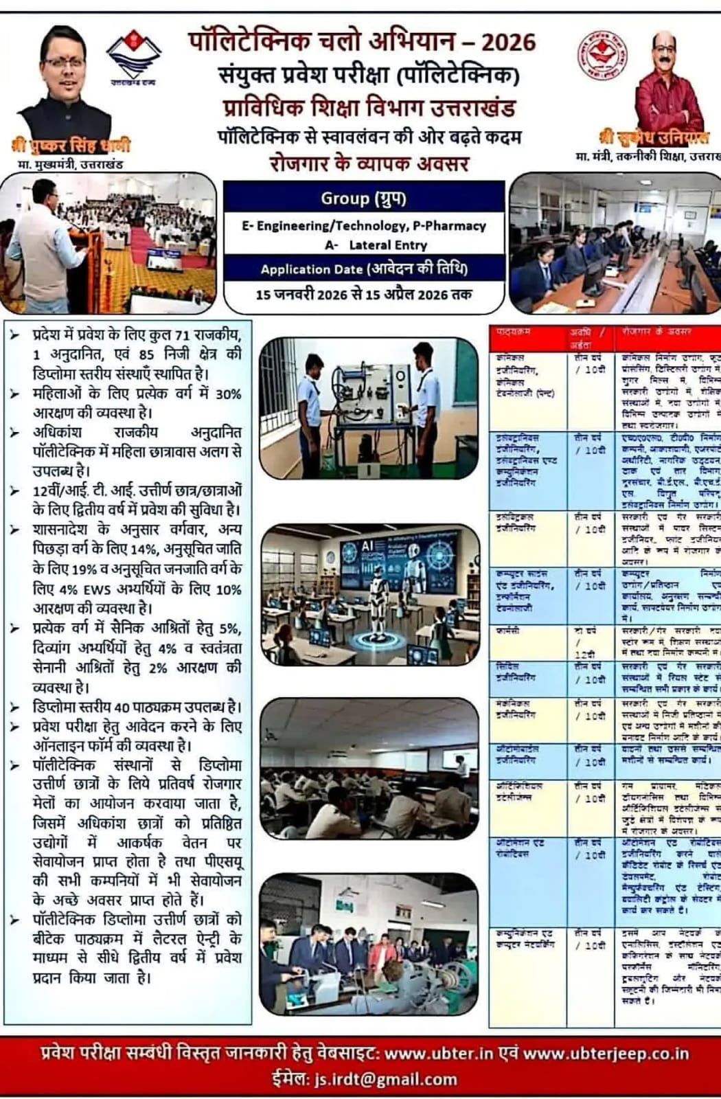 It offers Diploma in Engineering in six branches, namely Electrical Engineering, Electronics Engineering ,Information Technology , Civil and Environmental Engineering , Mechanical Engineering and Computer Science Engineering.It also offers Diploma in Pharmacy.